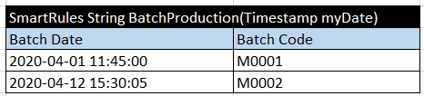 In this example, timestamp class object values in the Batch Date column are defined as a plain text, without conversion.