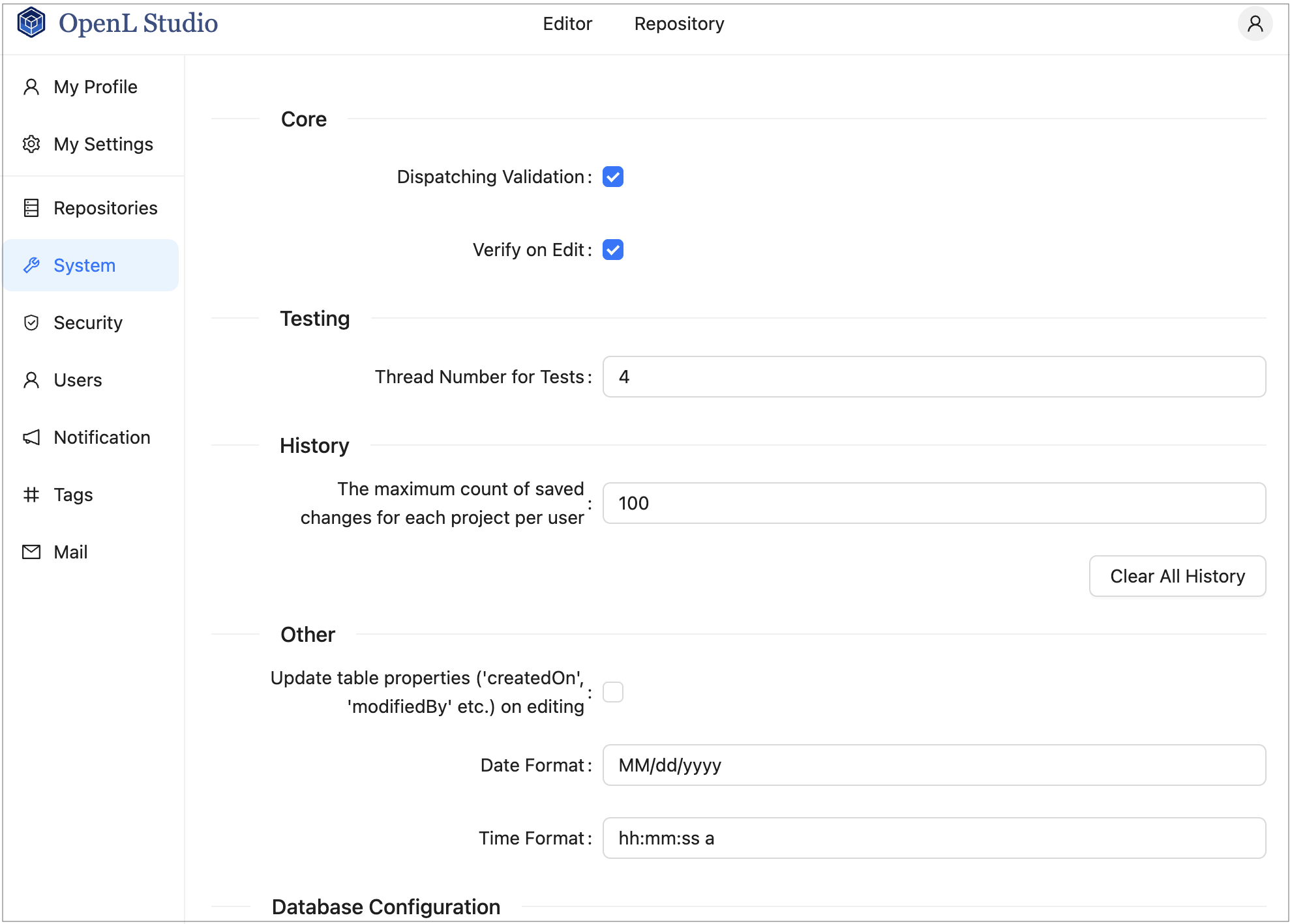 This section explains how to view and control OpenL Studio system settings and manage user information in the system.
