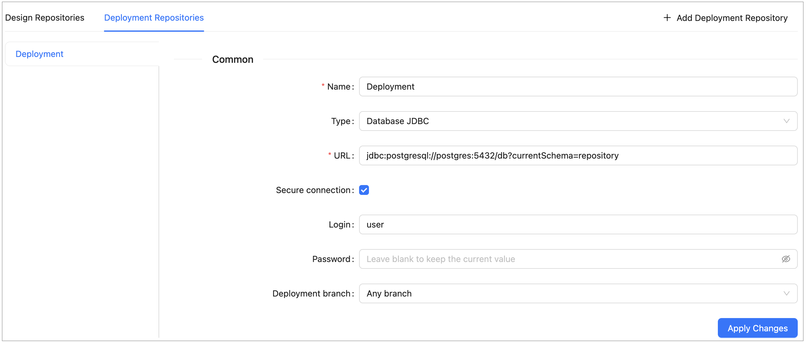 Click the Add Design Repository or Add Deployment Repository button in the top-right corner.