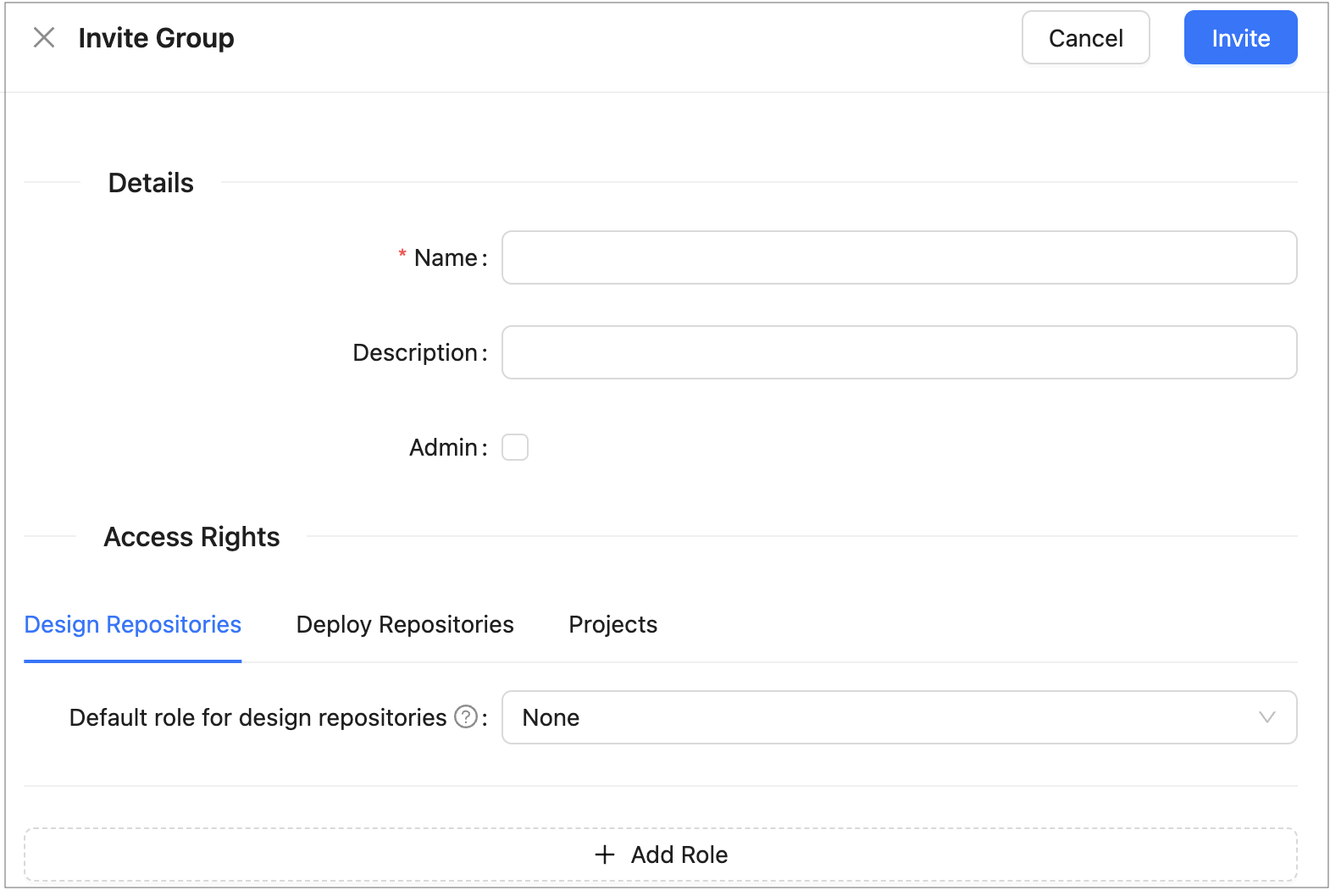 Permissions can be managed at the group level by inviting a group with the same name as defined in the identity provider and assigning it the required roles. Group membership is automatically resolved from the identity provider at login and does not require manual maintenance in OpenL Studio. Additional resource-level role assignments can also be applied directly on a user.