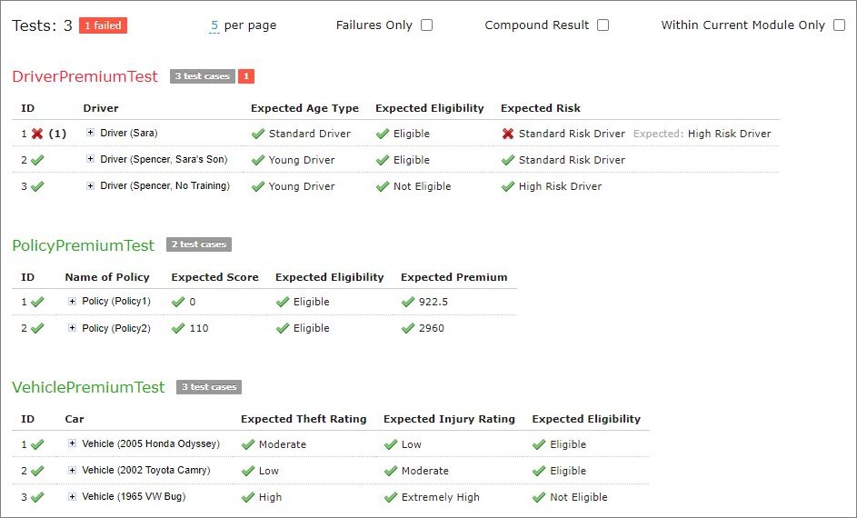 There are cases when a user wants to examine results of failed test cases only. For example, the project contains a test with more than 50 test cases and a user just needs to know whether project rules are operating correctly, that is, whether all test cases are passed. If a user runs the test, a huge table of results is returned, which is difficult to review and find failures to correct the rule or case. For such situations, OpenL Studio provides an option to display failed test cases only.