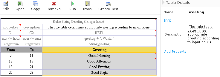 By default, OpenL Studio applies system properties to each created or edited table. For information on how to switch off this option, please refer to Managing Common Settings. The values of the System properties are provided in the table and in the Properties section.