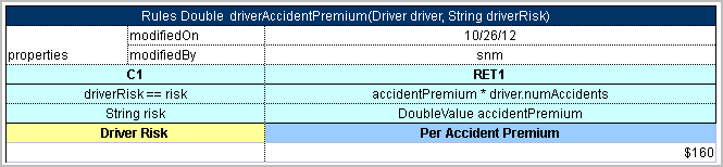 In addition, the right pane displays the actual parameters used in the particular rule call and the returned result. The example above demonstrates the results of tracing a decision table. For other rule tables, the picture slightly differs but the meaning is essentially the same.