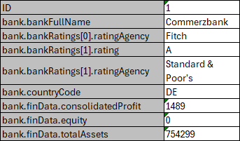 To exclude any empty input values, select the Skip Empty Parameters checkbox. The following examples illustrate how Flat Parameter Layout and Skip Empty Parameters affect the “test-results.xlsx” file: