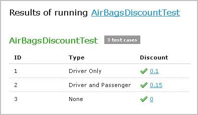 OpenL Studio supports visual controls for creating and running project tests. Test tables can be modified like all other tables in OpenL Studio. For information on modifying a table, see Modifying Tables. Test results are displayed in a simple format directly in the user interface.