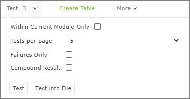and in a pop-up window that appears, clear or select Failures only. - Select the Test table, navigate to the Run button above the table, click the Run arrow