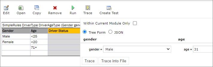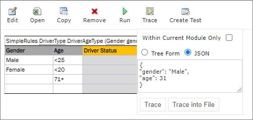 - In Rules editor, open a rule table to be traced and click Trace