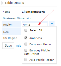 Selected table property to be added