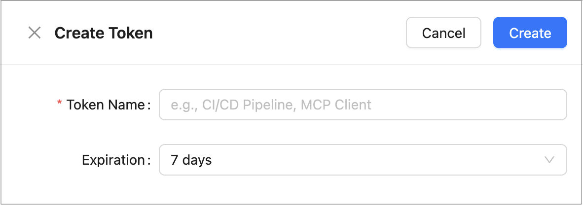 CI/CD PipelineorMCP Client. - Select an Expiration period: 7 days, 30 days, 60 days, 90 days, a custom date, or no expiration.