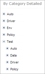 The By Category Detailed view displays modules sorted by the first value of the Category property. In the following example, the same module tree is sorted by Category Detailed and, for example, Test > Auto category is displayed in the Test node and Auto sub-node: Module tree sorted by Category Detailed |