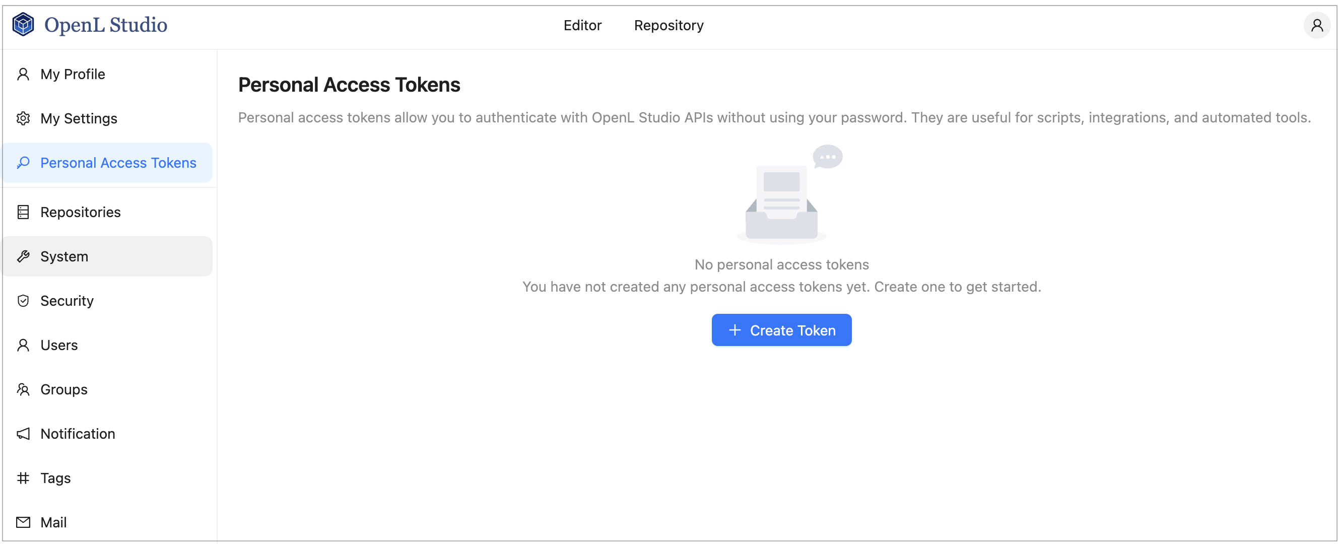 Personal access tokens allow you to authenticate with OpenL Studio APIs without using your password. They are useful for scripts, integrations, and automated tools.