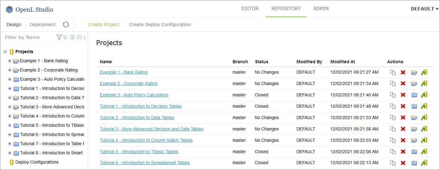 For more information on OpenL Studio UI, see Introducing Rules Editor and Introducing Repository Editor. For more information on the single and multi-user modes, see Security Overview.