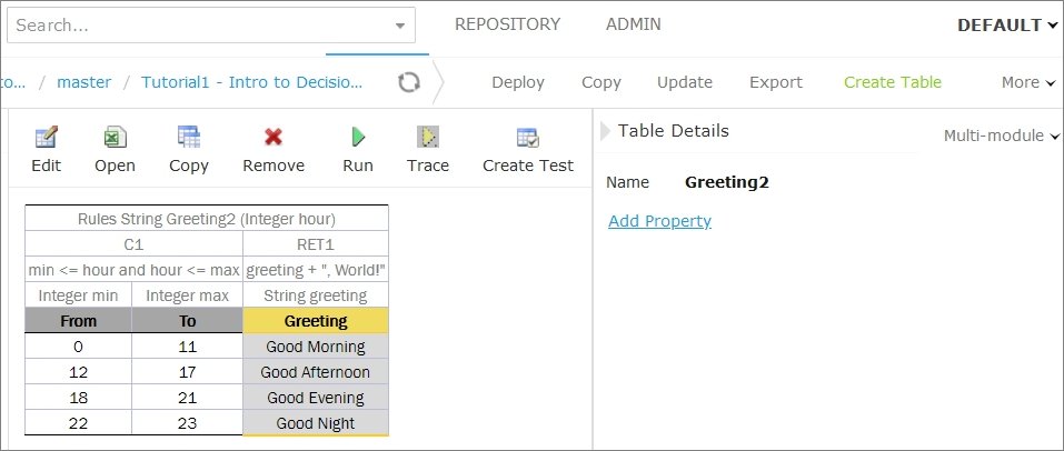 Rules Editor enables users to browse rule modules and modify table data. A default editor is displayed when a user opens a table in a module.