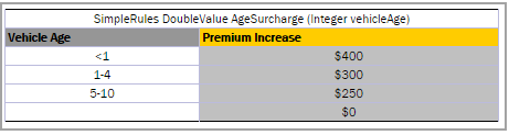 When a table is opened in a simple view, OpenL Studio hides various technical table details, such as table header and MS Excel formulas. An example of a table opened in a simple view is as follows.