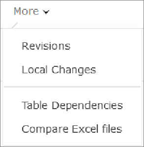 | The following table describes the available options: - Revisions: displays project revisions. - Local Changes: opens a page for reverting module changes. - Table Dependencies: opens a graph displaying dependencies among tables of the module. - Compare Excel files: initiates a dialog for comparing Excel files. |