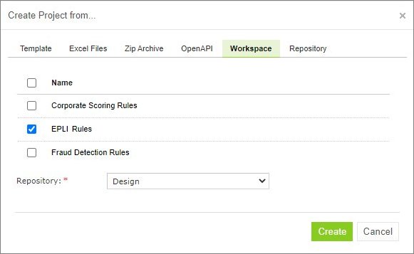 | Import a rule project from workspace | Importing a Project from Workspace |