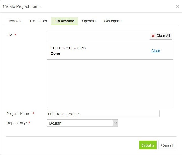 | Create a rule project from a zip archive | Creating a Project from ZIP Archive |
