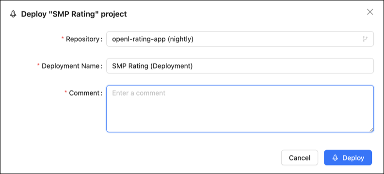 - In the Deployment Name field, select an existing deployment from the list or type a new name to create one.