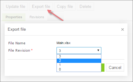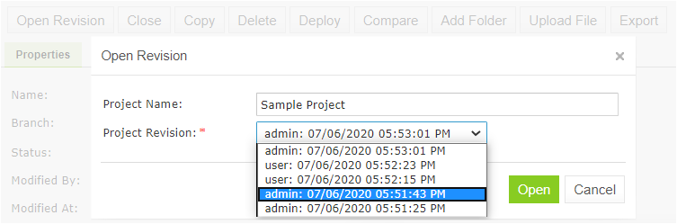 - In the displayed window, select the required project revision, click Export and a full project in the selected revision will be exported.