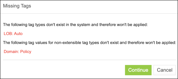 If tag types are defined as described in the Managing Tags section, a tag pop-up window appears. For more details, see the Specifying tags for a new project section.
