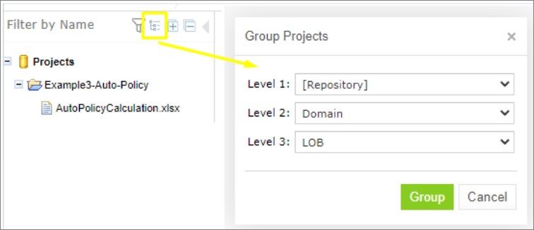 Projects in the repository editor are filtered the same way as in Rules Editor.