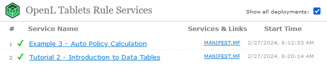 OpenL Studio displays only the latest revisions of each deployment in the deployment repository.