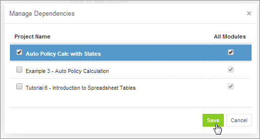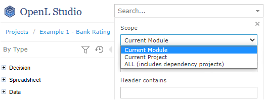 For more information on project and module dependencies, see OpenL Tablets Reference Guide > Project and Module Dependencies.