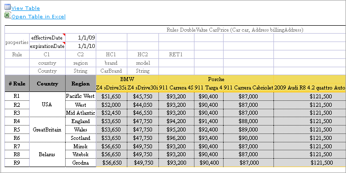OpenAPI project in Rules Editor, in the Tables Generation mode