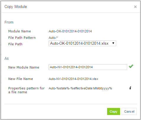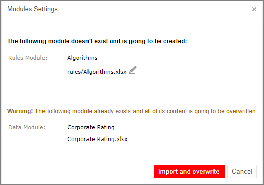 If a module already exists, it will be overwritten, and the corresponding warning message is displayed. In this case, there is no option to define a file name.