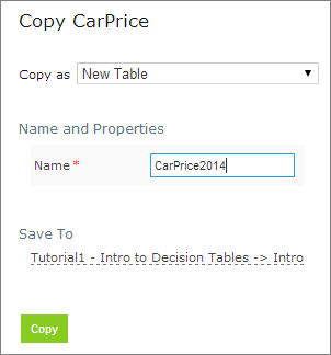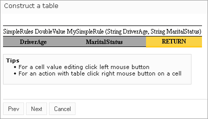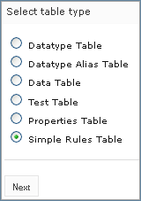 - Click Save to save the changes. The new simple rules table is created and appears in the project.