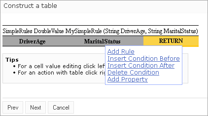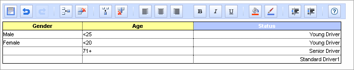 / Insert Condition AfterAdds a condition column to the specified position. An example of the added DriverOccupation condition column is as follows: