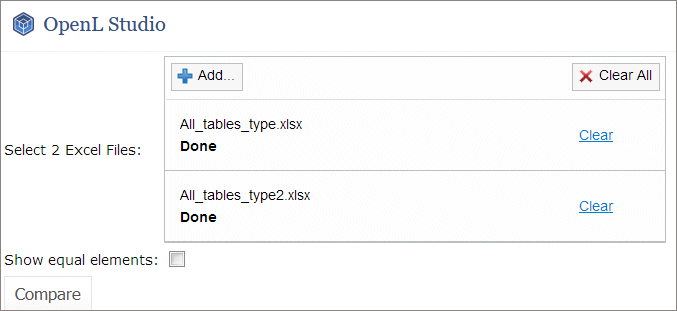 To display tables and other Excel file elements that differ in the selected Excel files, click Compare.
