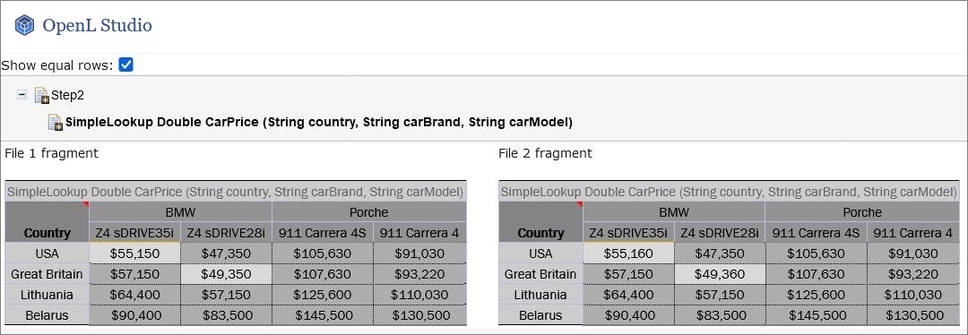 . - To view or hide equal rows in the table, select or clear the Show equal rows check box.