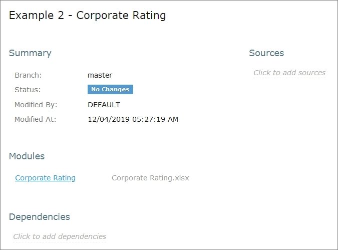 Rules Editor allows a user to work with one module at a time. To select a module, in the Projects tree, select the black hyperlink of the module name. The following module information is displayed: