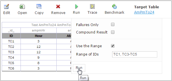 If a user clicks the refresh button in OpenL Studio, loading restarts and progress bar appears again. While loading in process, the Run, Trace, Test, and Benchmark actions work only for currently opened module. That is why the Within Current Module Only check box is selected and cannot be edited in the menu of these actions while loading is in progress.