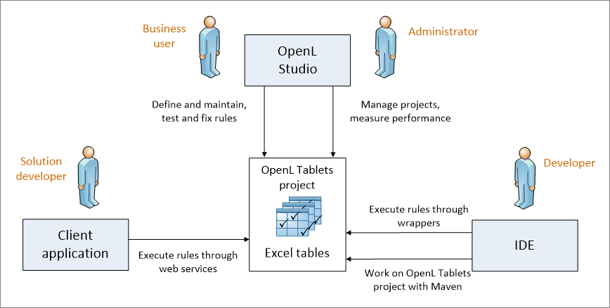 The following diagram displays how OpenL Tablets is used by different types of users.