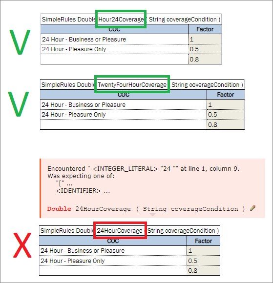Examples of correct and incorrect rule table names