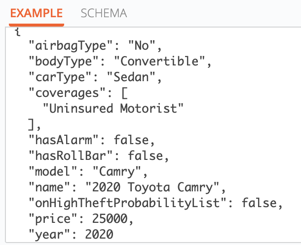 If a datatype is used as an input or output in a rule exposed as an API endpoint, its optional fields — if provided — are shown in the API specification.