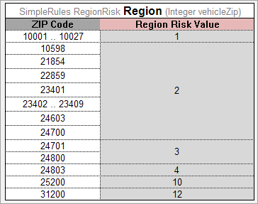 The following example explains how to use a range in a simple rules table.