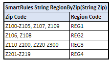 Simple and smart rules and smart lookup tables support using arrays of ranges. In the following example, the Z100-Z105, Z107, Z109 condition is a string range array where single elements Z107, Z109 are treated by system as ranges Z107-Z107, Z109-Z109.