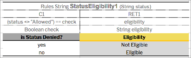 Decision table requiring an expression and simple equal operation for condition declaration