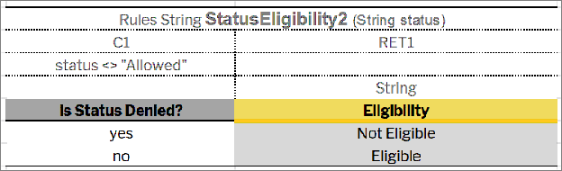 Simplified decision table