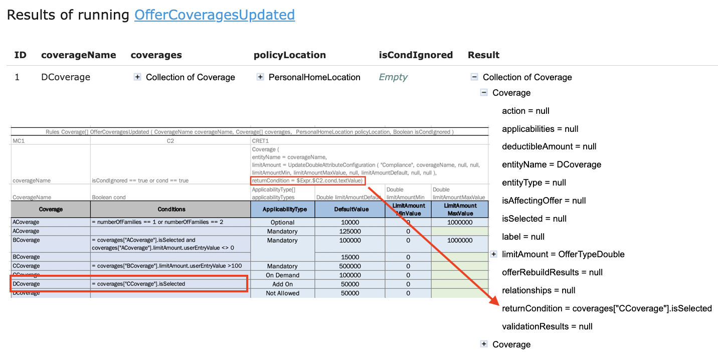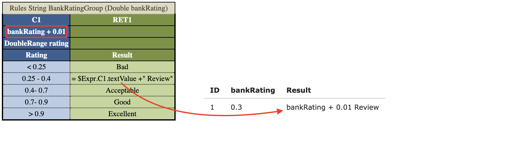 - $Expr.C1 is used to reference the expression for condition C1. To address action or return expression use RET1 and A1 respectively.