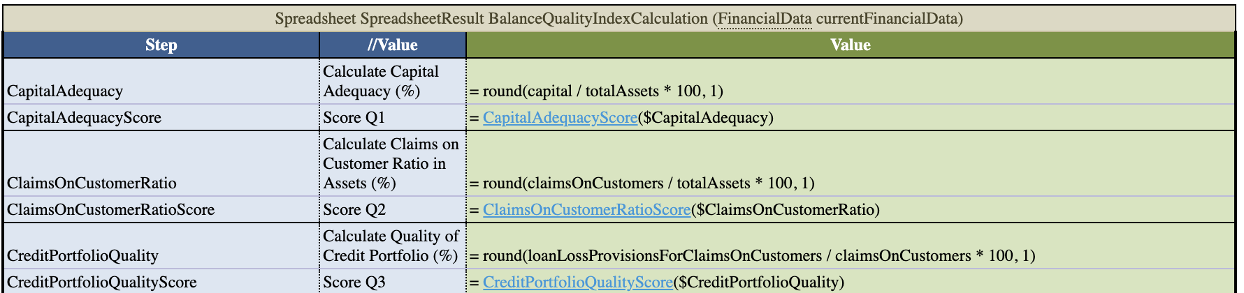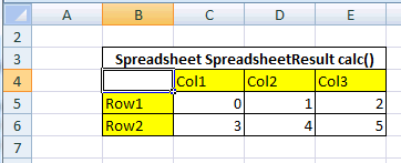 In the first case, users get the value of SpreadsheetResult type that is an analog of result matrix. All calculated cells of the spreadsheet table are accessible through this result. The following example displays a spreadsheet table of this type.