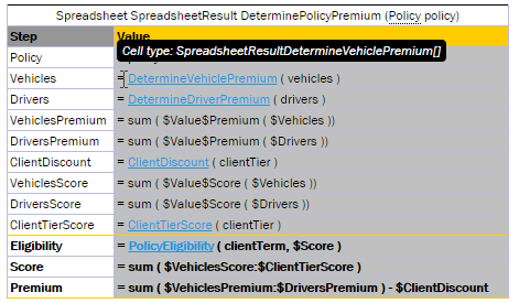 The SpreadsheetResult cell type is automatically determined if a user refers to it from another table according to the following logic: