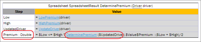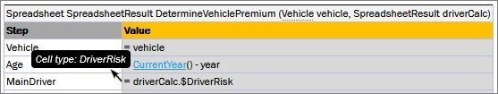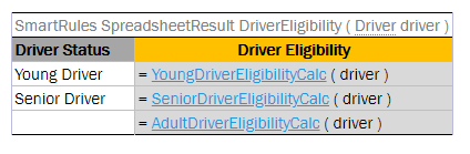 A user explicitly defines the return type of other Rules tables, such as Decision tables, as common SpreadsheetResult as follows:
