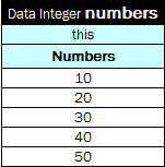An example of a data table containing an array of numbers is as follows.