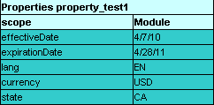 | scope | Identifies levels on which the property inheritance is defined. Available values are as follows: - Module Identifies properties defined for the whole module and inherited by all tables in it. There can be only one table with the Module scope in one module. A properties table with the Module level scope - Category Identifies properties applied to all tables where the category name equals the name specified in the category element. By default, a category name equals to the worksheet name. A properties table with the Category level scope |
