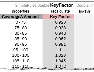 As the interest of the insurer is to get a new value of the Key factor for a new Coverage A limit value, recalculation type of the KeyFactor rule must be determined as Always.