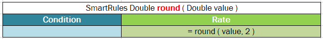 The ROUND function is used to round a value to a specified number of digits. For example, in financial operations, users may want to calculate insurance premium with accuracy up to two decimals. Usually, a number of digits in long data types, such as Double, must be limited. The ROUND function allows rounding a value to a whole number or to a fractional number with limited number of signs after decimal point. In case of rounding to a whole number, for the round(number) and round (number, String) functions, the type of the returned value is always Integer, except for BigDecimal input value which is returned as BigInteger.
